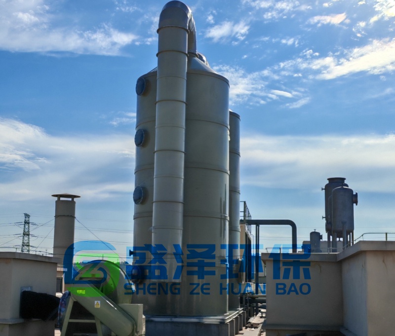 4. 含酸堿氣體+低濃度VOCs(如清洗廢氣),針對這類廢氣處理工藝組合為:噴淋塔→除霧器→活性炭吸附→排氣筒