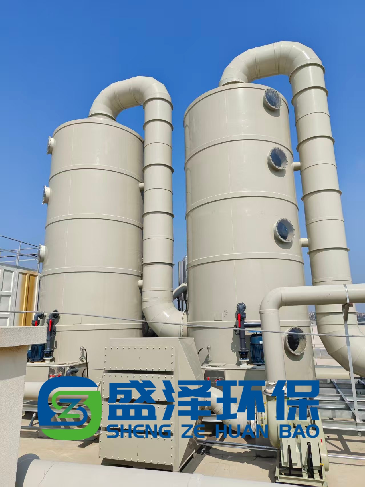 隨后,經(jīng)冷凝處理的廢氣進(jìn)入噴淋吸收塔如水洗塔)。在塔內(nèi),廢氣與自上而下的噴淋液(通常是水)充分逆流接觸。利用丙酮和乙醇易溶于水的物理性質(zhì),將其進(jìn)一步吸收溶解于水中,從而實現(xiàn)深度凈化。凈化后的潔凈氣體從塔頂達(dá)標(biāo)排放。