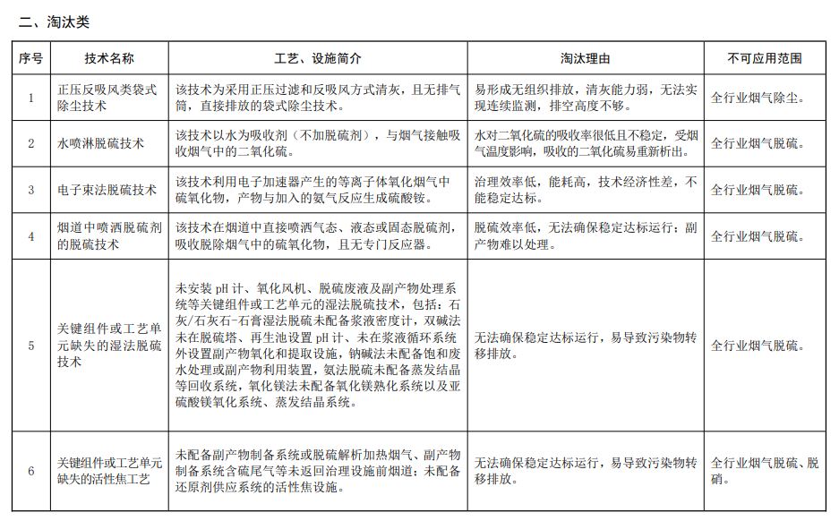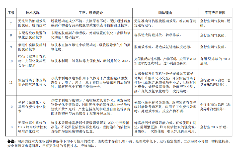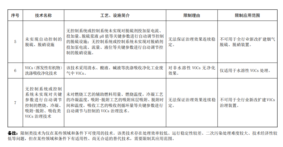 其中限制類7 項(xiàng),淘汰類13項(xiàng),涉及除塵、脫硫脫硝、VOCs治理等大氣污染防治細(xì)分領(lǐng)域。