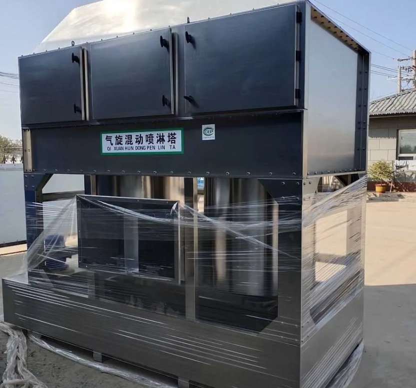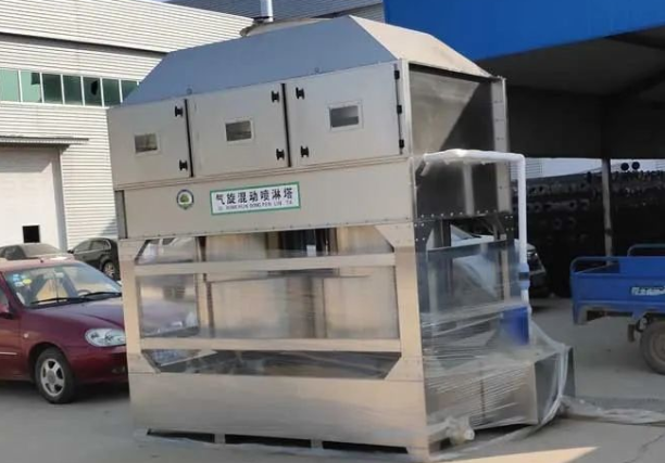 氣旋混動(dòng)噴淋塔(吸收廢氣凈化設(shè)備)工作原理氣旋噴淋塔在離心力作用下,含塵氣體呈 橫向向心運(yùn)動(dòng),含塵氣體停留時(shí)間更長,洗滌效果更好,徹 底改善了噴淋塔在某些特定工況下存在的除塵不徹 底、水噴淋塔容易堵塞等技術(shù)缺陷。產(chǎn)品采用專力技術(shù),避免水泵及噴頭的堵塞,大大提高生產(chǎn)效率,其中水池的水可循環(huán)使用,避免產(chǎn)生二次污染造成的困擾,更節(jié)約了水資源。氣旋塔內(nèi)安裝有若干個(gè)“圓形旋流桶”和高效除霧板。旋流桶內(nèi)放有實(shí)心填料球,上層的除霧板用來凈化水霧,達(dá)到脫水霧的目的,含塵氣體在塔內(nèi)旋流上升、并在各板上與由塔頂進(jìn)入的液體旋流接觸,完成除塵任務(wù)。